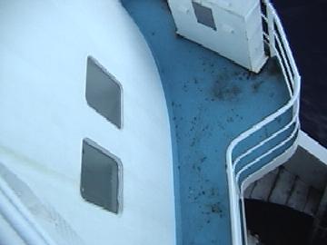 The windows of our cabin, I002, as seen from the Olympic deck.