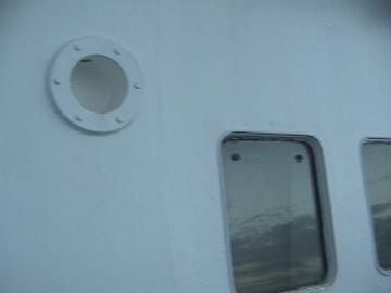 A porthole and windows on the Olympic deck.