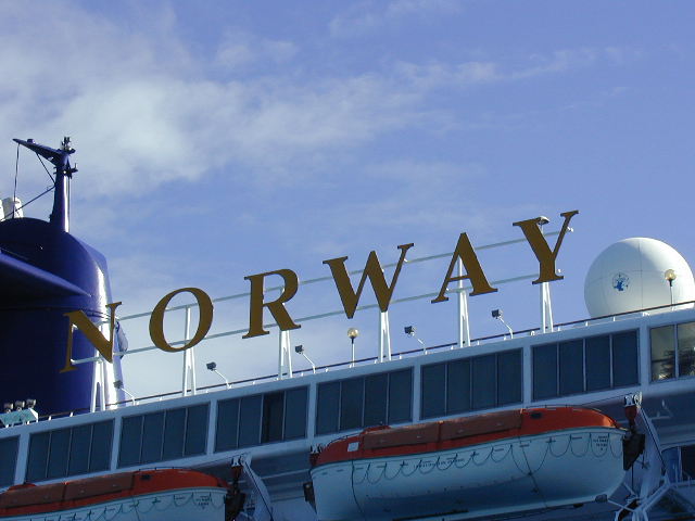 "The "Norway" lettering, as seen from the front.